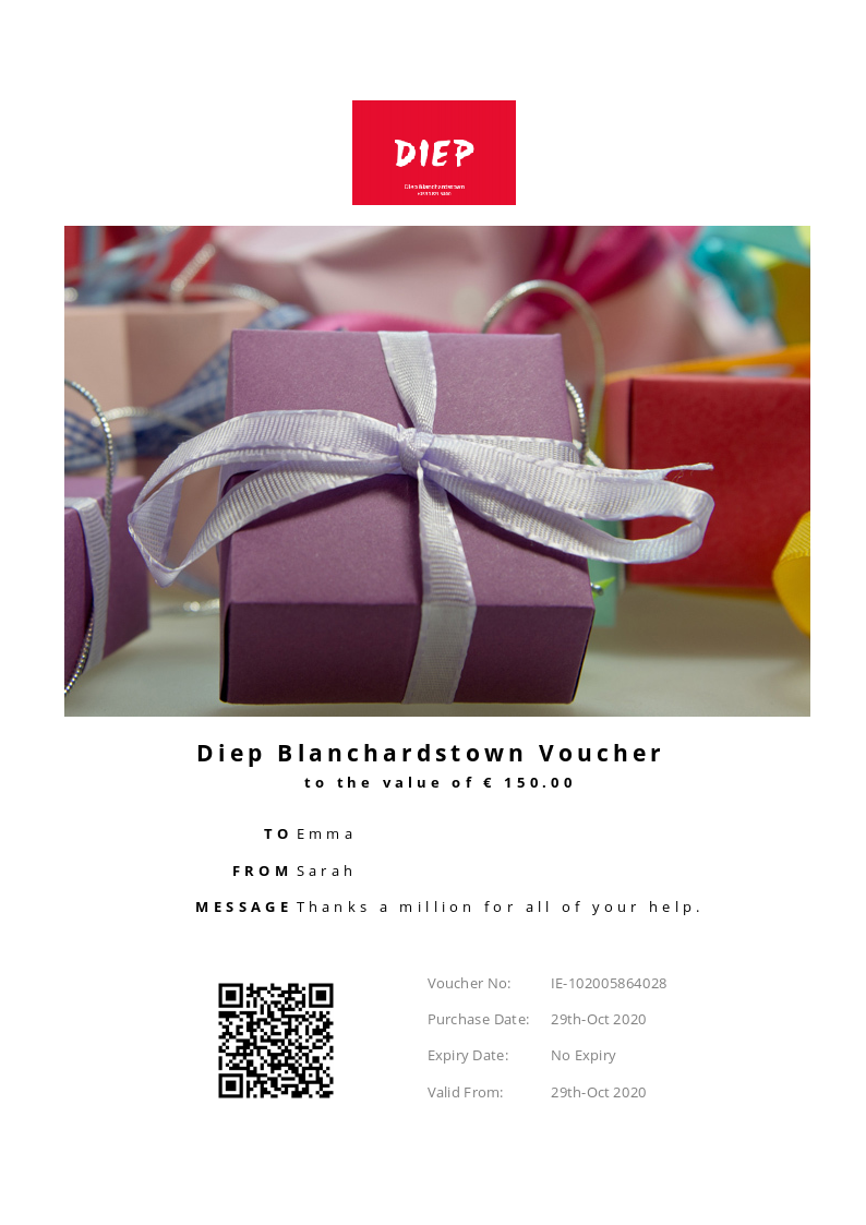 Diep Blanchardstown allows you to purchase instantly printable gift vouchers, special offers and tickets using the Voucher Connect platform.